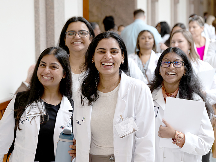 It’s not every day that a dog earns a university student ID or is routinely found in a science lab. But Rock, a service dog for TPA member third-year pharmacy student Elizabeth Brownen, certainly has earned many firsts at UNT Health Fort Worth. He’s the center of attention on campus, Brownen said, especially with her classmates. “We kind of have a joke that he’s my service dog and everybody else’s emotional support dog,” Brownen said. “He’s really changed the outlook of the entire cohort, and they all absolutely love him.”